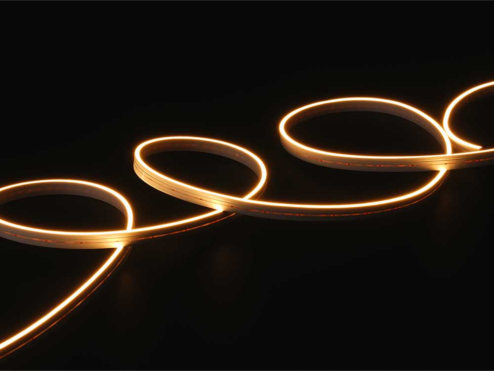 超级迷你侧发光0308为DC24V,IP67防水等级,最小弯曲直径为100mm,截面尺寸: 3mm+ 8mm(W*H)。优异的耐温范围,耐黄变,耐溶剂,盐水;发光均匀,无光斑,光效非常柔和,可以塑造不同的造型形状,迷你的体积为更小的空间提供造型能力和照明。