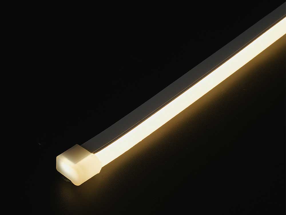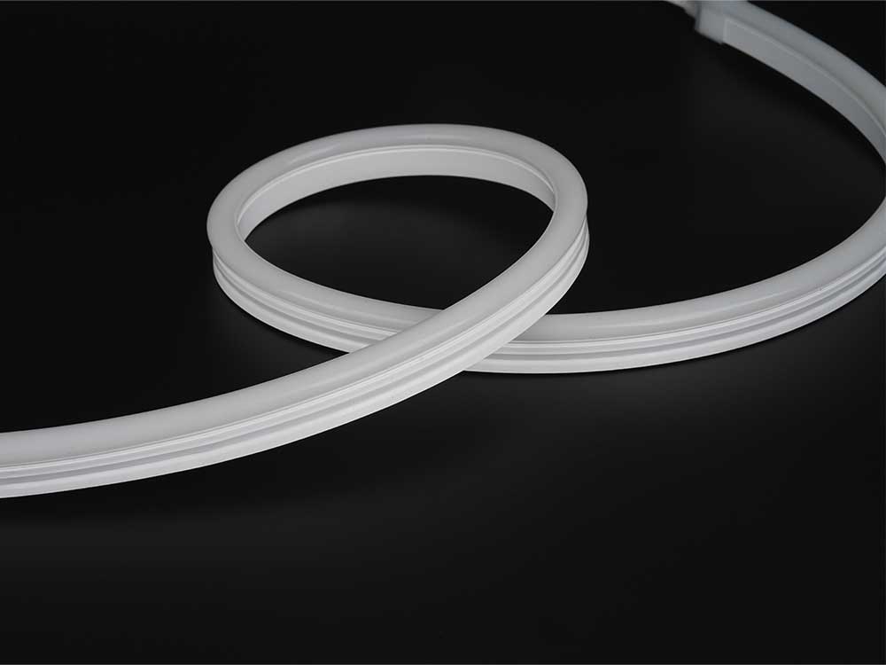 硅胶霓虹灯带0817侧发光,低压DC24V,IP67防水等级,最小弯曲直径为300mm,截面尺寸: 08mm*17mm(W*H)。优异的耐温范围, 耐黄变,耐酸碱,抗UV等优良特性,发光均匀,无光斑,光效非常柔和,柔韧性佳,可以塑造不同的造型形状,也可以用于直线照明,为室内和室外应用带来更出色的照明性能。