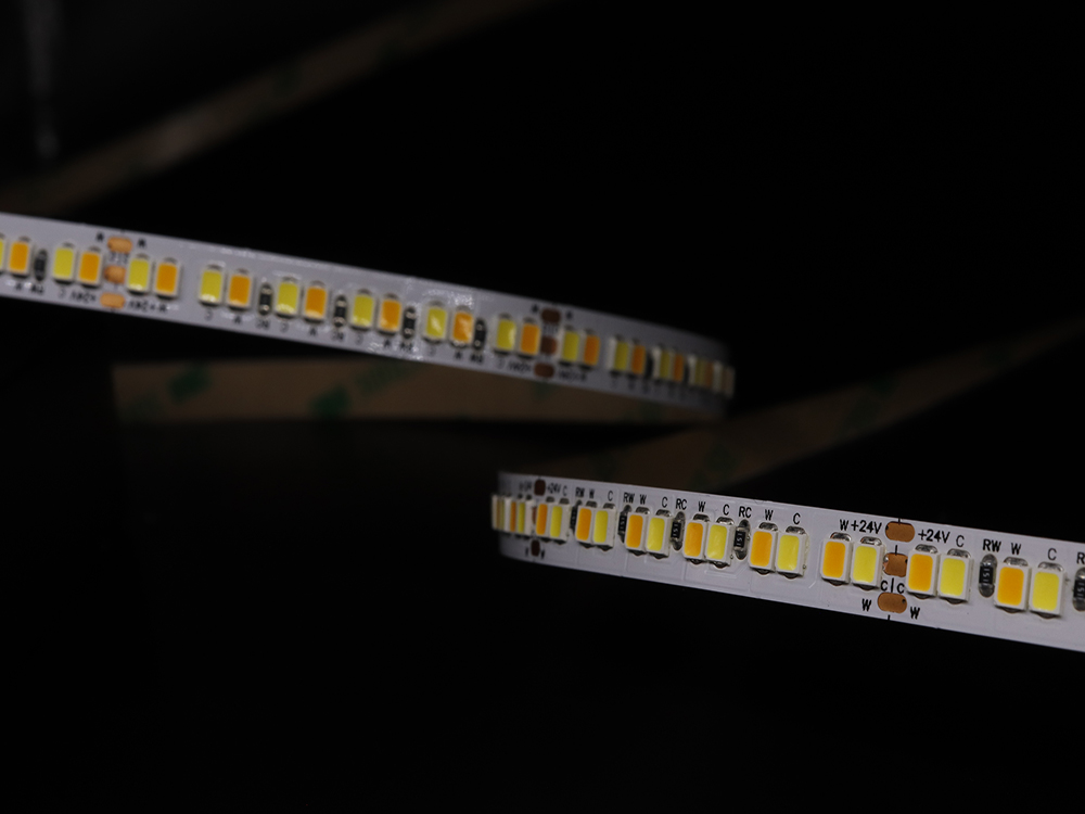 对空间在不同时段对色温要求的不同而开发的可调色温系列灯带,搭配控制器可实现色温从2500K- 7000K调节,以达到不同环境下暖色调和冷色调的