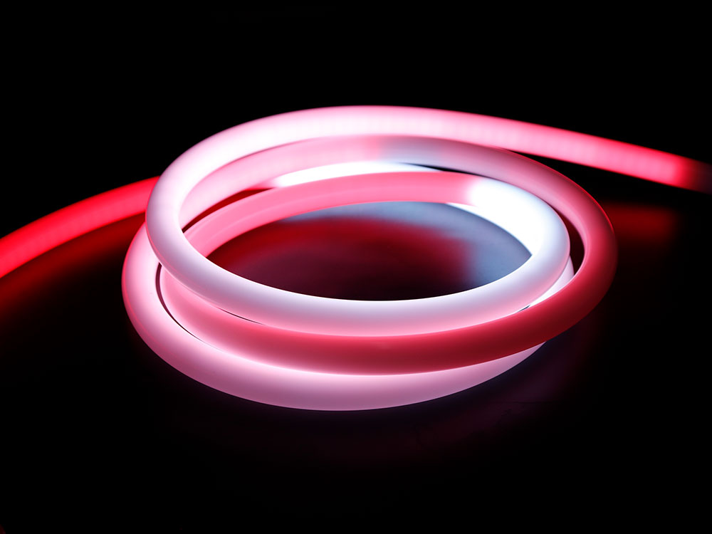 360° round series silicone neon flex effect 25mm diameter strip with 360° even illumination. No dark area. Flexible material, that match different application solutions to meet any molding needs. can be applied in a straight line, circular, curved, and another special shape. It is the best partner for your space design and artistic molding.
