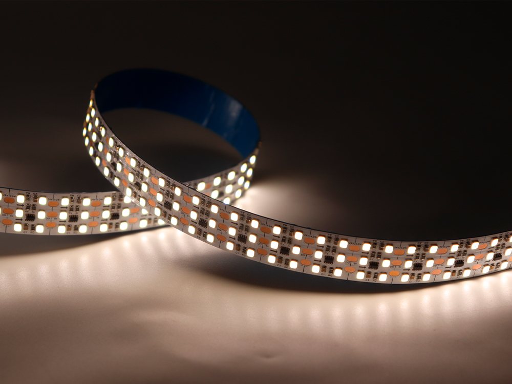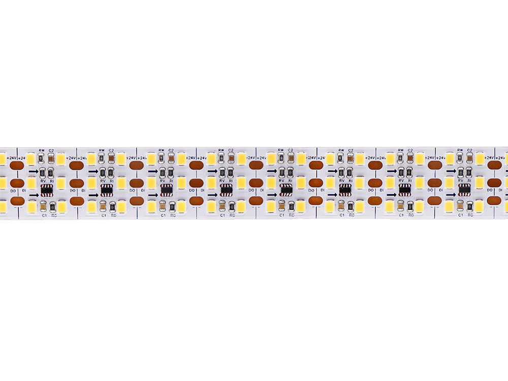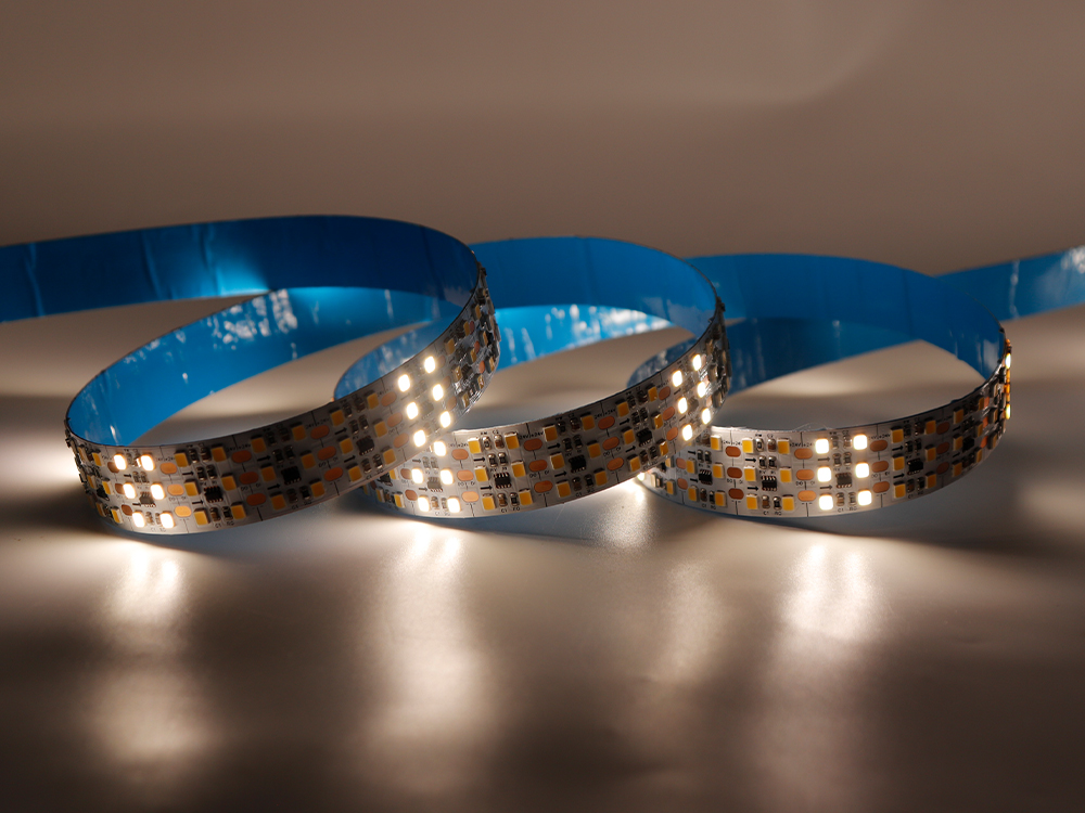 Three rows of high-density, high CRI white digital led strips with no dark spots.